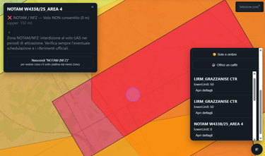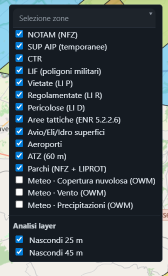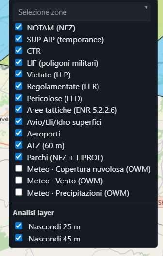 In presenza di zone sovrapposte o situazioni complesse, Drone Sky Check consente di attivare o disattivare singoli layer.