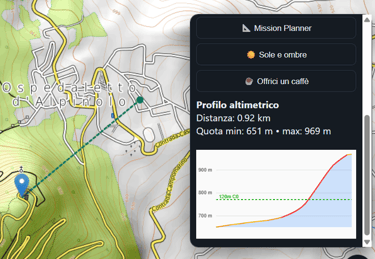 Puoi passare dalla mappa standard a quella satellitare per riconoscere il territorio reale, oppure utilizzare la visualizzazione orografica per comprendere altimetrie, rilievi e dislivelli che influenzano sicurezza, traiettorie e pianificazione operativa.