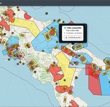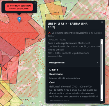 Ogni vista è sincronizzata con le zone aeronautiche, così contesto geografico e contesto normativo parlano la stessa lingua.