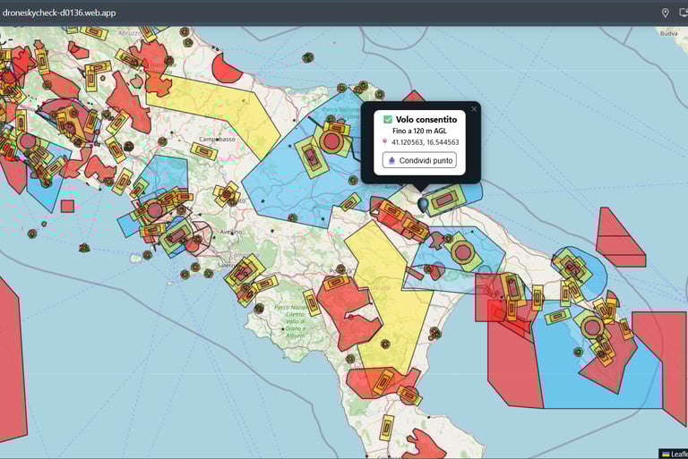 Drone Sky Check analizza queste informazioni e le riorganizza in modo coerente con la mappa, evidenziando: