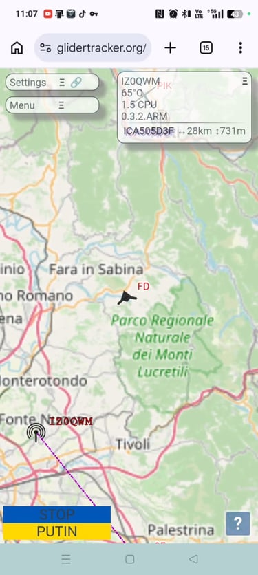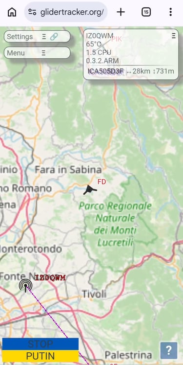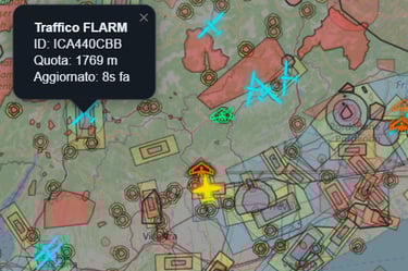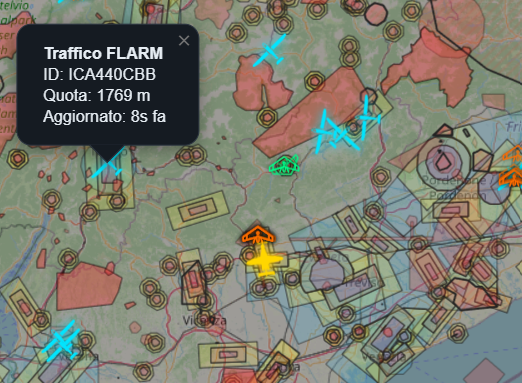 Drone Sky Check integra anche dati provenienti dalla rete OGN (Open Glider Network), permettendo la visualizzazione di:
