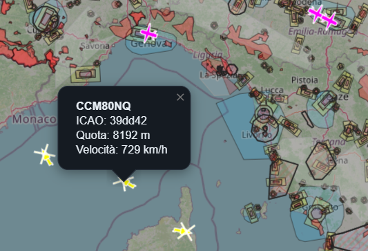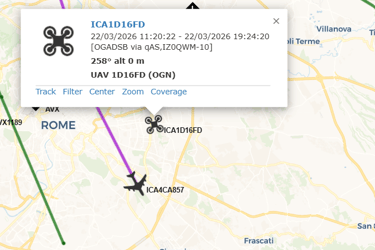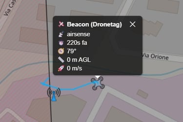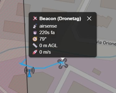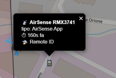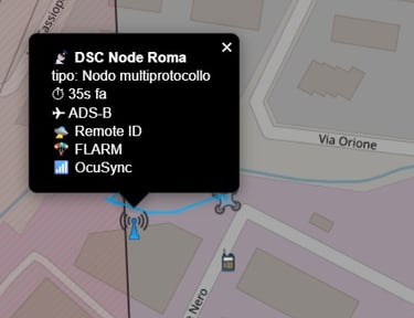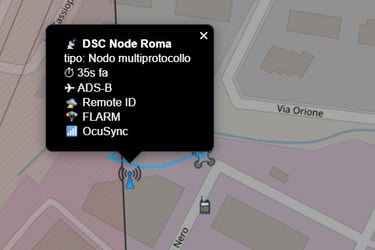 I droni rilevati vengono mostrati in mappa in tempo reale, contribuendo a costruire una rete distribuita di monitoraggio del traffico UAS.