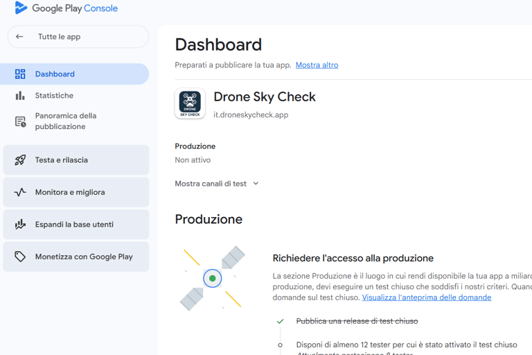 Prima della pubblicazione ufficiale, ho avviato una fase di test pubblico di Drone Sky Check, disponibile sia su Android che su iOS.